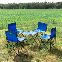 Техническа характеристика:Брой артикули-5 брСъдържание на комплекта – маса, столовеФормата на плота е квадратнаВисочина на масата-370 ммМатериал на плота – полиестерМатериал на корпуса – металМаксимално натоварване на масата-30 кгЦвят-синРазмери в разгънато състояние-700x450x450, 370x460x460 ммМатер..