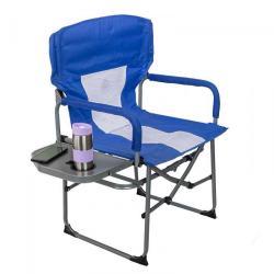 Сгъваем стол за къмпинг с метална конструкция и поставка за чаша, цвят син е изключително подходящ за риболов, за излети в планината, на плажа и т.н. Конструкцията на стола е направена от висококачествена стомана, която издържа товар до 150 кг. Седалката е двуслойна - Oxford 600x300D с PVC. Има..