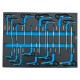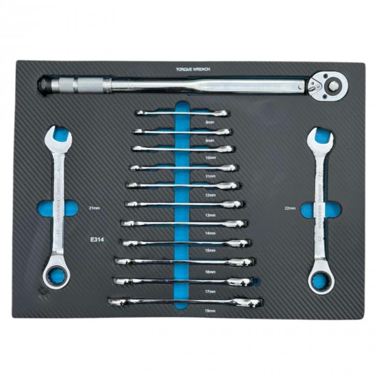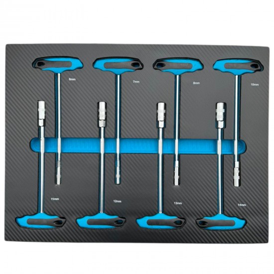 Всички инструменти са подредени в прецизно изрязани тарелки от маслоустойчива EVA пяна с карбоново покритие, осигуряваща отлична защита и подреден външен вид.