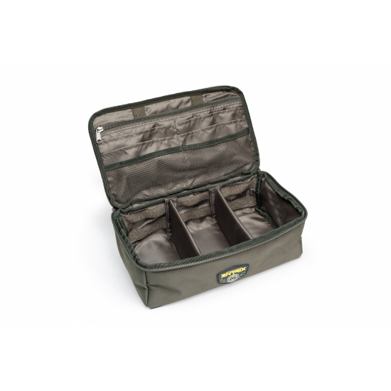 Универсален по-голям по размер калъф от серията Entrix, предназначен за пренасяне на малки аксесоари. Тази серия се характеризира с използването на висококачествени компоненти, материали и качествена изработка. Всичко това идва на изключително изгодна цена. Този калъф идва с две омекотени подвижни прегради за разделяне на основното отделение. Има общо седем джоба от долната страна на капака за съхранение на дребни предмети. Калъфът е оборудван с здрав цип с два ергономично оформени плъзгача с дизайн на Mivardi и здрава дръжка за носене.