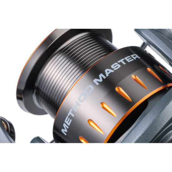 Здрава макара с издръжливи предавки и червячна система, подходяща за метод и тежък фидер риболов. Прецизното предно съпротивление с Q.A.D. системата позволява бързи настройки. Гладкото и точно навиване се осигурява от осем сачмени лагера и система за бавно колебание. Предавателното отношение е проектирано за максимална производителност и дълъг живот при извличане на тежки хранилки. Ергономично оформеното копче на дръжката осигурява надежден захват и подобрява страхотното усещане от използването на тази макара.