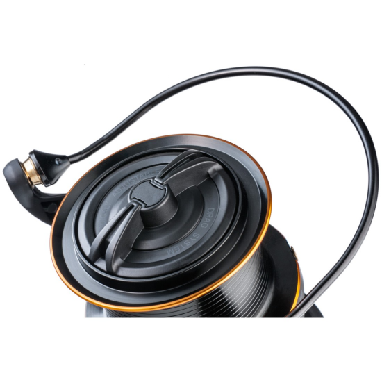 Тази подобрена версия на прочутата макара за риболов на шаран със система с преден аванс се откроява с изключителното си съотношение цена/производителност. Това е перфектният избор за шаранджийски риболовци, които търсят голяма, богата на функции, висококачествена и надеждна макара на достъпна цена. Здравото и издръжливо тяло от графитна сплав съдържа значителна червячна предавка и девет запечатани лагера от неръждаема стомана. Освен това предлага намалено тегло и подобрена ергономичност. Спирачната система позволява бързи и прецизни настройки в рамките на по-малко от половин оборот на капачката. Големият диаметър на шпулата осигурява дълго изтегляне на линията на оборот(над 1 метър). Капацитетът на наличните шпули отговаря на всички изисквания както за кастинг, така и за риболов на дълги дистанции. Потребителите ще оценят плавната работа, минималните вибрации и много прецизното полагане на линията, предлагани от този модел. Дръжката с нов дизайн допълнително подобрява комфорта на потребителя.