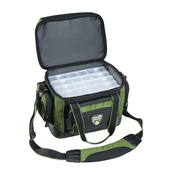 Просторна чанта за примамки и аксесоари, необходими за спининг сесии. Чантата се доставя с пет големи кутии за примамки. Изключително големият джоб в горния капак и трите странични джоба помагат за съхранение на вашите аксесоари. Добре подплатената презрамка позволява удобно транспортиране.