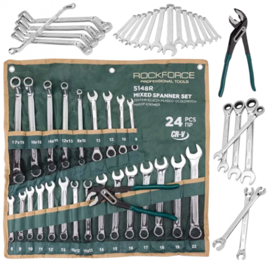Комплект MIX Професионални Ключове 24 части ROCKFORCE RF-5148R Срязани Ключове, Тресчотни Ключове, Звездогаечни Ключове, Ключове Лули и Клещи Гарги