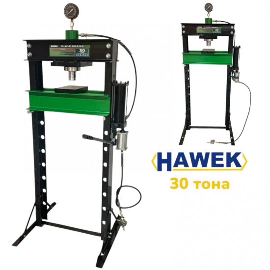 Пневмо-хидравличната подова преса HAWEK 30T е високоефективно оборудване, предназначено за професионална работа при пресоване, огъване, монтаж и демонтаж на лагери, втулки и тежки метални детайли. Подходяща е за автосервизи, индустриални предприятия и професионални работилници.