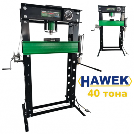 Пневмо-хидравличната подова преса HAWEK 40T е високоефективно оборудване, предназначено за професионална работа при пресоване, огъване, монтаж и демонтаж на лагери, втулки и тежки метални детайли. Подходяща е за автосервизи, индустриални предприятия и професионални работилници.