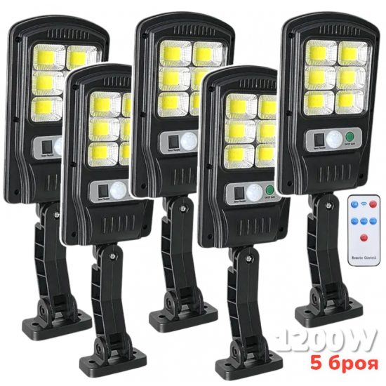 Снабдена със соларен панел от мощност 1.2W. Продуктът има вграден сензор за движение, който се активира при засичане на движението. Той засича обекта на разстояние до 5 метра. Тази функция на лампата спомага за по-ниска консумация на енергия, тъй като лампата започне да свети по силно при засичане на определен обект. Снабдена е с три режима на работа, като можете сами да изберете коя да бъде активна. Соларната LED лампа е лесна за поставяне, с монтаж предназначен за стена.