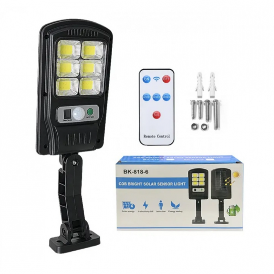 Снабдена със соларен панел от мощност 1.2W. Продуктът има вграден сензор за движение, който се активира при засичане на движението. Той засича обекта на разстояние до 5 метра. Тази функция на лампата спомага за по-ниска консумация на енергия, тъй като лампата започне да свети по силно при засичане на определен обект. Снабдена е с три режима на работа, като можете сами да изберете коя да бъде активна. Соларната LED лампа е лесна за поставяне, с монтаж предназначен за стена.